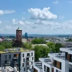 寝室1室のModern Blue Apartment クラクフはクラクフ旧市街からわずか1.7kmに位置し、宿泊から徒歩で10分離れたKraków Main 鉄道駅へ行きやすいです。